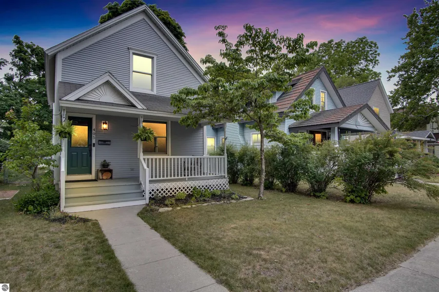 This beautiful 3 Bedroom 3 Bathroom home located in Traverse City's Central Neighborhood is ready for you to move in, unpack, and relax on the front porch. Discover this homes inviting character with a beautifully landscaped yard bounding with flowers to compliment the Japanese Maple, Lilacs Trees, Wisteria and Dogwood Tree in the front yard. You can't miss the small backyard garden with Tomatoes growing for the new Owner(s). This home has all the feels of Downtown Traverse city including a covered front porch, heated 2 car garage and custom built in eating nook. Don't miss the clawfoot soaking tub in the guest bathroom. Main floor was opened up when remodeled for great entertainment purposes. Upstairs, you will find 3 bedrooms, 2 tastefully updated full bathrooms, and a laundry room so there is not trekking laundry up & down the stairs! Recent updates include, all NEW appliances; includ...