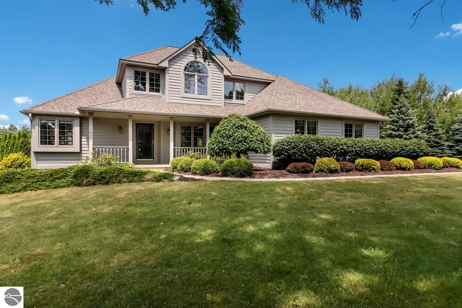 Located just 15 minutes south of Traverse City, enjoy the benefits of a peaceful setting while still being in close proximity to shopping, dining, and the other amenities Traverse City has to offer. Step inside to discover a thoughtfully designed open floor plan. The kitchen features plenty of cabinet space and a large island, which flows into the adjoining dining area and family room. A den or formal dining room is adjacent to the main living area. The primary bedroom, located on the main level, provides privacy with its own en-suite bathroom, a walk-in closet and sliding doors out to the deck and pool area. Three additional bedrooms and a full bath round out the upper level. A walkout finished basement provides extra space for a living area, recreation room, a home office/media room, and has a bathroom. Situated on almost six acres with beautiful landscaping and walking trails, this pr...