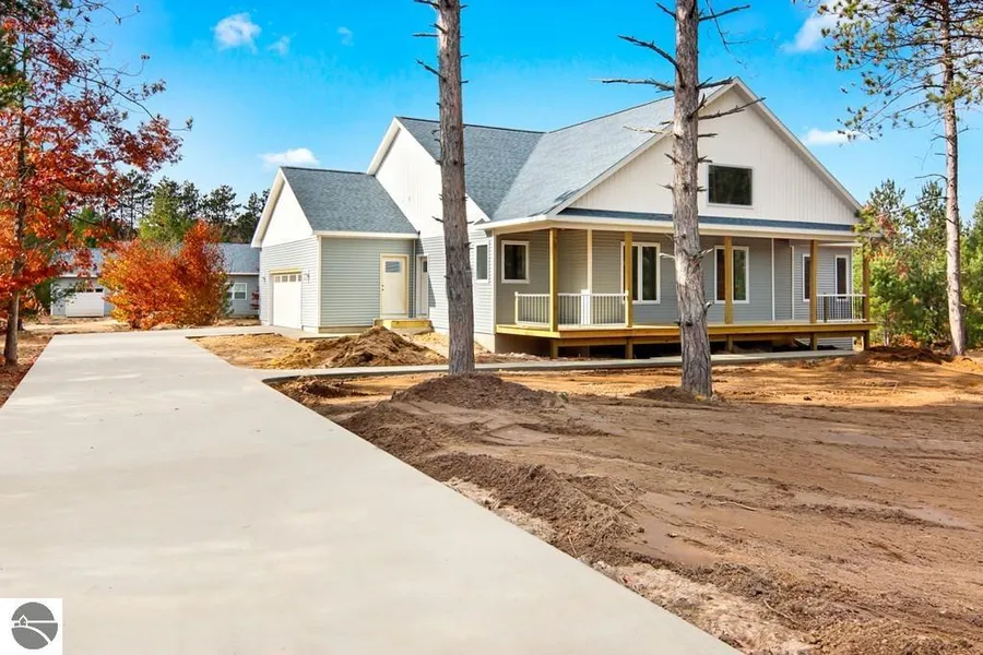 Newly constructed custom built home on an expansive 2.5 acre cul-de-sac setting that also includes a fully finished accessory building that would make the perfect home office, studio or other creative space. Sprawling ranch style home offers an open living floor plan with cathedral ceiling, island kitchen with granite countertops and stainless steel appliances, private primary suite with a massive walk in closet and well appointed private bath, spacious guest bedrooms, main floor laundry, walk out lower level and mudroom with half bath for guests. Welcoming covered front porch as well as a covered back deck are the perfect place to take in the privacy this setting has to offer. Location offers easy access to both Traverse City and Kingsley amenities as well as state land, hiking trails, snowmobile trails and so much more.