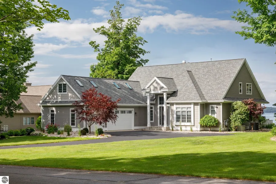 Exquisite Elk Lake Home perfectly situated in charming Shores of Palastra and access to the ever popular chain of lakes (Torch Lake, Clam Lake & Lake Bellaire...just to name a few). This architecturally well thought-out home will impress you the moment you enter. Spacious, Stylish, Top Quality, High End, Tranquility, Sanctuary and Amazing Views are a few words that will come to mind as you meander through this amazing recently updated home all while taking in the picturesque views of Elk Lake. The sunlit living room is enhanced by floor to ceiling windows, a towering stone fireplace, vaulted ceilings, custom built-ins, and so much more. The chef's kitchen‹ is stunning with Wolf, Cove & Sub-Zero appliances, large island with bar seating, impressive countertops, custom buffet & cabinetry featuring art glass and a coffee bar that is delightful!! The dining room with a stone fireplace will ...