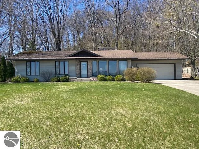 Rare opportunity to own property on West Bay at an affordable price. This two bedroom one bath Ranch home has a full unfinished basement and an attached 2 car garage. The living room has a spectular view of the stunning range in blues of Grand Traverse Bay and a cozy wood burning fireplace. Spacious dining room with wooded back yard views. The 101 Feet of private frontage is just across the road. A dock is allowed. This home is a fixer upper which means an opportunity to personalize and make it your own. Elmwood Township does allow STR but requires a license, currently there is a waiting list.
