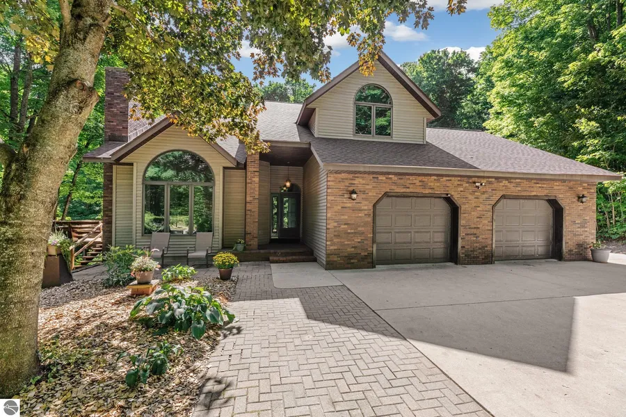 Experience your ideal retreat in Williamsburg, MI, with this exquisite property set on 10 private, wooded acres, offering a perfect blend of tranquility and modern comfort. This charming residence features 4 spacious bedrooms and 3.5 baths. The living room showcases cathedral ceilings and a cozy fireplace, with an open-concept layout seamlessly connecting the kitchen, dining area, and living room, all offering scenic views of the wooded backyard. A delightful sunroom extends to a brand-new patio, ideal for evening relaxation. The serene upstairs master suite boasts two spacious closets, while the second floor also includes a convenient laundry room and a full bath for the additional bedrooms. The lower level is complete with a walk-out slider, a non-conforming bedroom, a full bath, a kitchenette, and ample storage, offering versatile space for guests, an extra family room, or recreational activities. Outside, a 30x40 pole barn with 30 amp service provides additional storage and workspace. The thriving garden features Concord & Niagara grapes, raspberries, pears, apples, and Montmorency cherries, offering fresh, homegrown fruit. Conveniently located near Traverse City Horse Shows, Elk Lake, and Torch Lake, this property combines modern living with the charm of a natural retreat, making it ideal for both relaxation and entertaining. Seize the opportunity to own this exceptional home and its private paradise!