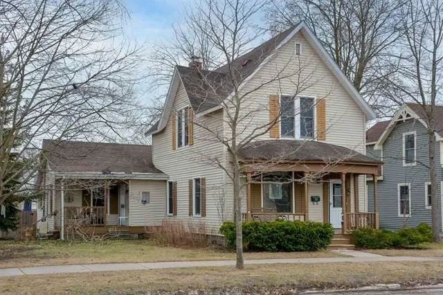Welcome to the charming Traverse City Central Neighborhood! This delightful 1800's Victorian home exudes historic elegance and character throughout. The versatile main floor features a private bedroom suite with its own bathroom and separate entrance, perfect for guests or a home office. The light & bright eat-in kitchen flows into a generous living room and bonus space for flexible living. Upstairs, you'll find two additional bedrooms and a full bath. Enjoy morning coffee on the inviting front or side porches. A 2-car detached garage with alley access provides ample parking. One of the property's most valuable assets is its large lot, which offers the rare opportunity to be split and developed with another home, an ideal investment or expansion option in this sought-after location. This prime downtown setting puts you steps away from vibrant shopping, exceptional restaurants, entertainment venues, pristine beaches, top-rated schools, and state-of-the-art medical facilities. Experience the perfect blend of historic charm and modern convenience in this desirable Central Neighborhood setting. Click on the virtual tour link for an incredibly realistic view of the interior.