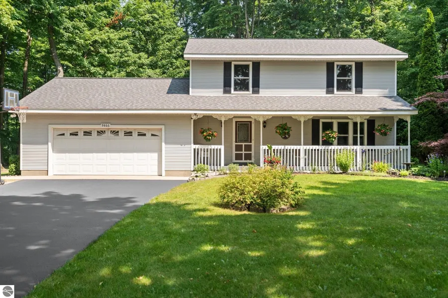 This inviting 4-bedroom, 3.5-bath home sits on a full acre surrounded by mature hardwoods and pines, offering a peaceful setting just minutes from Traverse City. The well-kept landscaping and spacious patio create a great space for relaxing or entertaining outdoors. Inside, you'll find a comfortable layout with a private primary suite, multiple living areas, and a kitchen that’s both functional and welcoming. The lower-level family room with a cozy fireplace is perfect for movie nights or quiet evenings in. An over-sized attached 2-car garage adds convenience, and the overall feel is one of warmth, care, and comfort—inside and out.