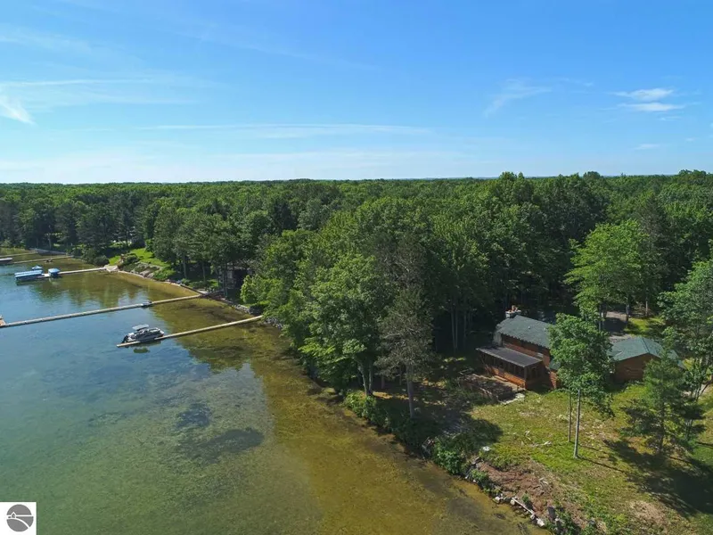 Unique and beautiful Long Lake property with 209' private frontage, long tree lined private paved driveway on 2.85 acres. Wonderful property to build your dream waterfront home. The log home interior has been dismantled. In addition, there is a guest home (414 sq. ft.) that is allowed (grandfathered) that would be wonderful for overflow guest or make it as bunk house. The detached garage (33' x 23') has been remodeled but cannot be used for living quarters. Dock is included in the sale. Wonderful quiet lake location for fishing (Walleye & others), water skiing, kayak/canoe to Ruth Lake or just take a pontoon boat ride.
