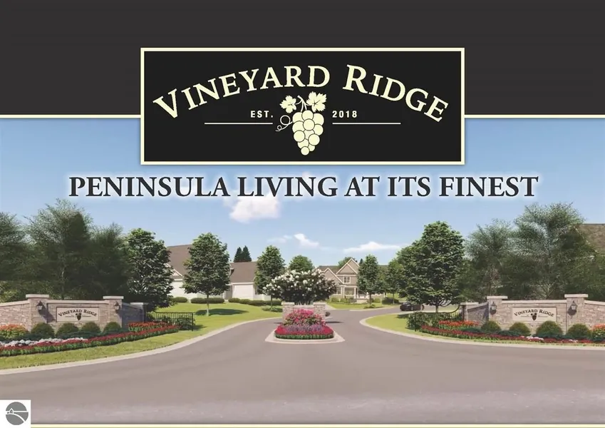 Vineyard Ridge is a unique Planned Unit Development just minutes out Old Mission Peninsula. When complete there will be 47 homes that cover just 15% of the land area leaving 85% as common property to enjoy. Unique in that it is developed to give the new home owner a very well done neighborhood with professional landscaping of entrance and common areas as well as at homesites, consistent very well constructed homes of high quality. Vineyard Ridge has municipal water and sewer, underground electric and cable. Includes pool, pavilion bldg, hot tub, gas fire pit, on site vineyard - all to be completed in Phase I. Professional landscaping and irrigation, concrete curbing, asphalt roads. All driveways concrete. 62 Acre park across street. To see Virtual Tour Of Vineyard Ridge as anticipated completed go to: www.VineyardRidgeVT.net Go to: VineyardRidge.net website to find all Condominium Docume...