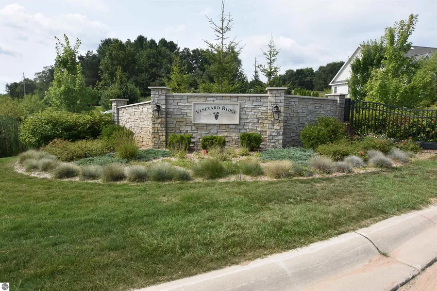 Vineyard Ridge is a unique PUD close in on Old Mission Peninsula. 47 homes covering just 15% of the land area leaving 85% as common property to enjoy. It offers professional landscaped entrances, common areas, high quality exterior and interior designs, all unique custom homes with a small on site vineyard, a pavilion, gas grills, swimming pool, hot tub and fire pit. There is municipal water, sewer, natural gas, high speed internet and cable. Across the street from Vineyard Ridge and very popular is the 62 acre Pelizzari Natural Park. The association will maintain the private roads, plow homeowner's driveways and provide for all lawn care.