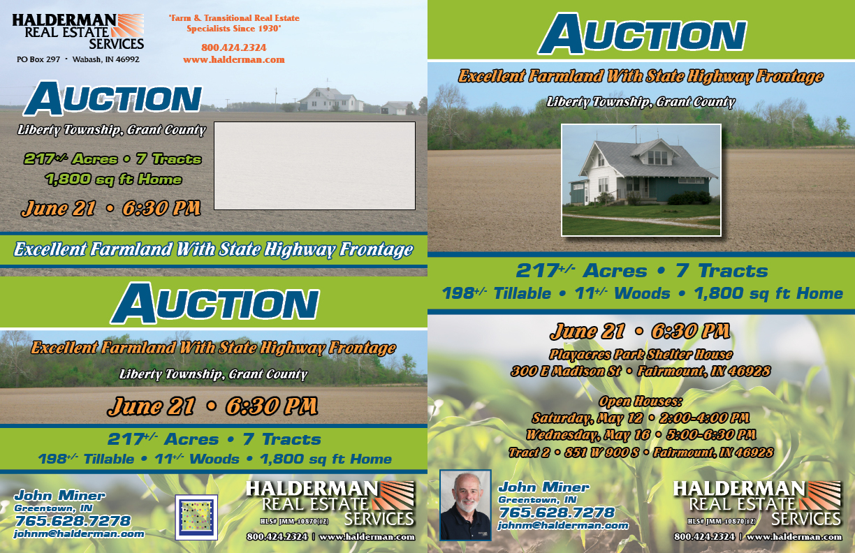 AUCTION Thursday, June 21 at 6:30 PM to be held at the Playacres Park Shelter House, 300 E Madison Street, Fairmount, IN 46928.