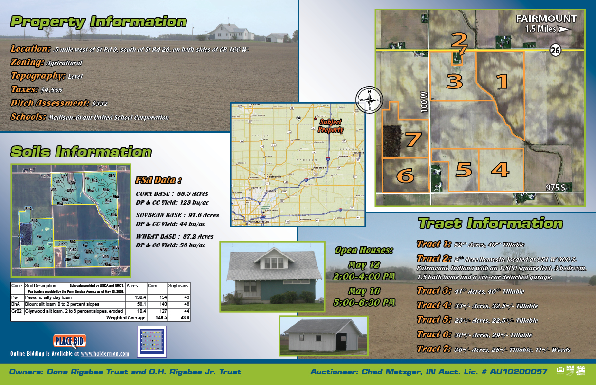 OPEN HOUSES: Saturday, May 12, 2:00 4:00 PM, Wednesday, May 16, 5:00 6:30 PM, 851 W 900 S, Fairmount, IN 46928