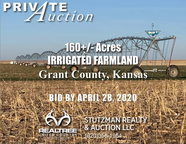 This irrigated farm is located in southwestern Grant County Kansas. This productive farmland features Class II and Class III soils comprised of Ulysses, Richfield and Atchison loams. Under pivot irrigation, are 122+/- acres of 2019 Fall-planted triticale. The corners, 40+/- acres are currently open with no growing crops.
