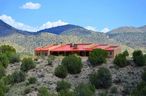 Sante Fe adobe style house for sale in southwest New Mexico near the Arizona state line. Real estate property offers spectacular views and quiet and privacy. The custom Santa Fe style home is 2300 square feet with large outdoor living space. 3 bedrooms and 2 baths, office and a gym, high ceilings of tongue and groove panels and vegas, lintels over all the windows. Recently constructed in 2007 the home benefits from lots of energy efficient features. Outdoor space is integral to SW living. The home's exterior features a large Courtyard in front and covered patio and grill area in back. natural beauty of high desert country. Just 35 min. outside of Silver City, excellent weather all year round. 39.8 Acres of amazing land, home is custom built in the SanteFe style. Outdoors features a huge courtyard in the front and covered patio in back. Peaceful living, Gila Wilderness close by. This could be your "Winter -get-away" 3 hours to Tucson or El Paso. 30051-31877