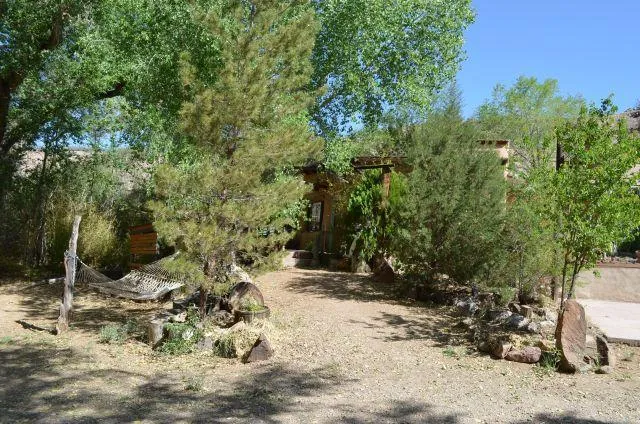 This home is on 10 acres that borders Bear Creek. The location is very private with a hill behind and trees surrounding. The home is one bedroom with another bedroom in a separate building. There is a huge game room, green house, bath house and storage. Unique style and straw bale construction. NEW SEPTIC SYSTEM