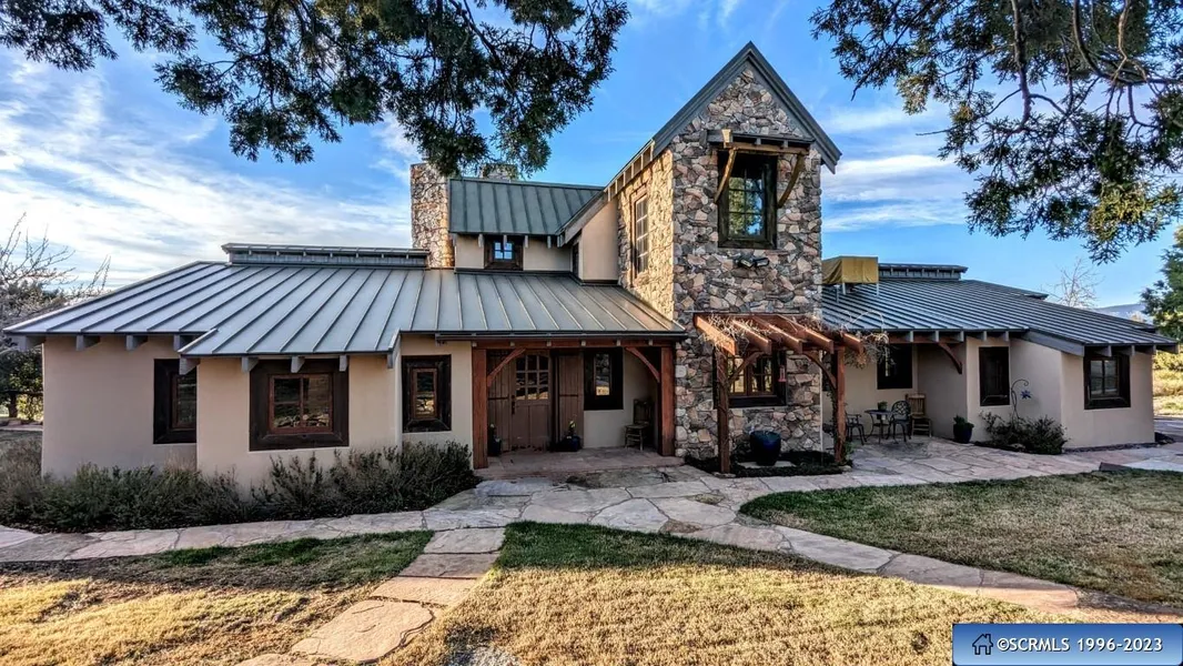 This 2358 sq/ft 3/2 home is magnificently designed and built to incorporate native stone foundations, porch column piers and steps and fireplaces with heavy timber beams/columns, portraying the true spirit of the old western character. You will be greeted by the two Anasazi Bear figures inlaid in the stone entryway below the 2 1\4" thick knotty Alder entry door, leading you into a plethora of custom craftsmanship to attract your attention. Peeled bark trees enhance the interior, complimented by peeled Shaggy Bark Juniper railings, Indian Box-Joint Pine walls, terracotta tile floors with towering 20+ foot ceilings. The 840 sq/ft +/- porch seems to levitate above the canyon, providing indescribable views, privacy and security of remote living in the incredible southwest, a land of rich western history. The photos and description are far from capturing the real allure of Two Bears. The loft...