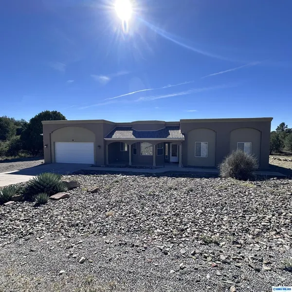 Move in ready Southwest style 3bd/2ba on almost an acre. There is a large kitchen with island and plenty of cabinets, plus access to back patio for easy BBQing. The spacious living room just off the kitchen has a gas fireplace and south facing windows. The dining area can be accessed from the kitchen or living room. The primary suite includes a large walk-in closet with the bathroom having split double sinks with elevated corner shelf. All bedrooms have carpet and ceiling fans. The laundry room has a deep sink and storage closet. A small pantry area is across from the laundry. The back yard has a nice covered patio as well as an uncovered concrete area, along with a small fenced area with grass that is great for dogs or play yard. Room to park your RV. Schedule your showing today!