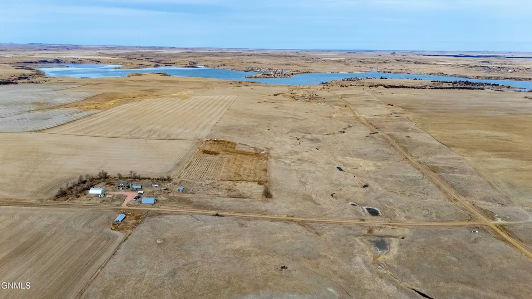 This custom home was built in 2023 with the upgrades you have been dreaming of, on 85 +/- acres of land! Home is located within one mile of the Sled Creek Boat ramp! 32X50 shop with 500 square feet of living quarters, 12X18 greenhouse and 2 chicken coops! You will be sure to appreciate the panoramic views of the prairie and Lake Tschida from your wrap around deck! Inside you will find an open concept with high ceilings, custom cabinetry, quartz countertop on the island, upgraded doors and windows, a beautiful fireplace and an oversized living area in the basement.
