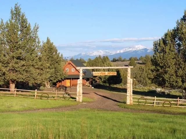 If you love hunting in wide open spaces, hearing the call of the wild and breathing in fresh mountain air, its time to book your room! This property embraces a lifestyle that beckons you into the great outdoors. Currently operating as the Inn at Juniper Ridge, this retreat provides the owners with additional income with seasonal overnight lodging. Guests can relax and plan their excursions for many adventures in outdoor recreation with all the comforts of home. Travelers can relax in the adjacent cabin called the Cowboy Suite next to the main headquarters. Within this structure there is separate entrances to an office area, a workshop area and to the Cowboy Suite, where it is complete with a queen bed, bathroom, kitchenette and sitting area overlooking Mary's Reservoir. The reservoir provides fire suppression and is a watering area for wildlife. It offers a bird's eye view of big game from the main cabin as well, and is stocked with trout in a peaceful setting among the shade trees, where you can feed the fish or relax on the dock after a long days work.The sellers have a small percentage of this property under income producing restoration projects to enhance bird and wildlife habitat. Through this effort the game numbers have had a steady increased in population due to the numerous spring and pond developments, juniper thinning and replanting of species for the wildlife buffer underway. Native grasses, sage and a variety of beneficial tree plantings complete the terrain. Abundant wildlife graze within view of the deck overlooking this vast countryside. Although this unique holding is a perfect weekend getaway as a hunting refuge, the 1440 sq ft main cabin built in 2006 is perfect for full time living.