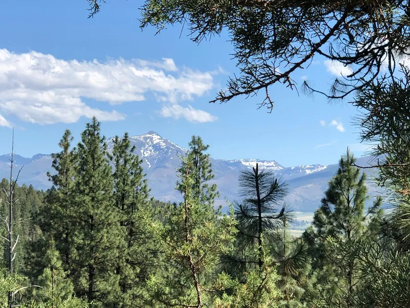 There is a very large, graveled RV pad with room for two or three of your hunting trailers or RVs in a meadow by Bear Creek just off Road 18, shaded by a huge Ponderosa Pine tree. The flat entrance driveway into it (see photo) is on the left, only 3.1 miles up the county road. The pad includes a large T turnaround located near the pad, so you can turn your large RV trailers around and drive out going forward.