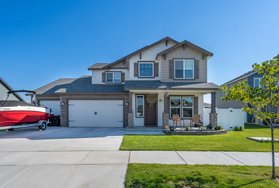 This beautiful 2020 home is a must see! Completed with a fully vinyl fenced back yard, underground sprinklers and a lawn in the back. Spacious open floor plan with beautiful upgrades throughout. Stylish quartz countertops throughout the house, including a large island in the center of the kitchen with plenty of seating. Two primary bedrooms, one on each floor. Upgraded tile showers in both primary bedrooms along with large walk in closets. 5 total bedrooms PLUS office/den. Extra padding under the carpet for comfort and longevity, and much more!