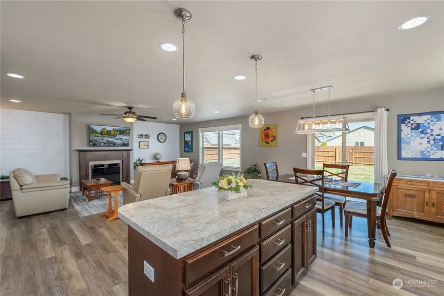 Motivated Sellers! Welcome to this well-maintained rambler located in the heart of Quincy in a great neighborhood. Open living area with electric fireplace, flanked by shiplap accent wall. Updated appliances in kitchen, with island and pantry. Nice separation of space. Primary with 4-piece en-suite and large closet on opposite side of 2 bedrooms, full bath and utility room. Fully fenced backyard with patio and new sliding glass door. RV parking next to home. New rain gutters installed. Easy care landscaping with underground sprinklers. Re-location forces sale of this beautiful turn-key rambler! Seller is open to offers including credits to buyers! Easy to Tour, reach out to listing agent or your preferred agent to make appointment.