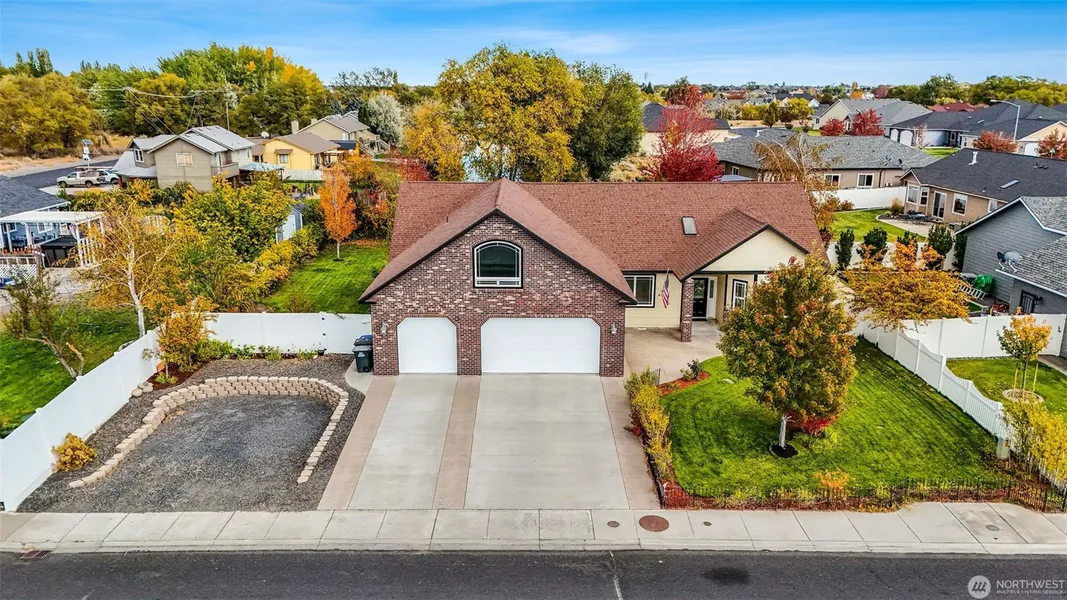 Unique Waterfront 3-bed, 2-bath luxury home with an expansive office and a large bonus room on the second floor. Inviting living room features a cozy propane fireplace, 9-foot ceilings, engineered hardwood floors, tile, and premium carpeting. Home is bathed in natural light, showcasing the custom cabinets and granite countertops. Large primary suite offers two walk-in closets, big shower with dual heads, and a soaking tub. Outside, the fully fenced backyard is a beautiful garden with fruit trees, flowers, a gazebo on the patio, and plenty of space to relax. Additional highlights include a 3-car garage, and room for RV, boat, or trailer parking. Nestled in a neighborhood close to the lake and sand dunes. Easy lake access thru back gate.
