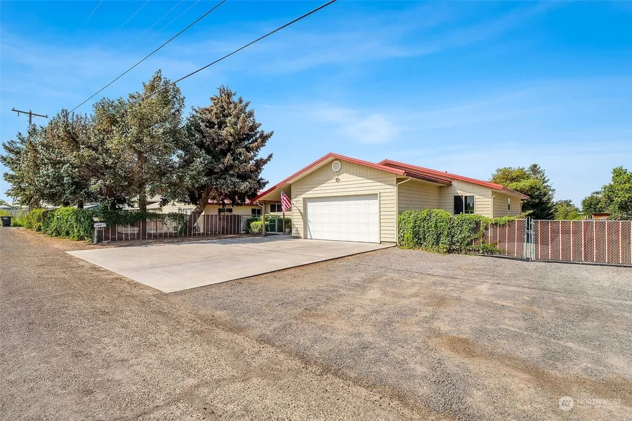 Serene farmland setting invites you in!Easy access by front & rear ramps to spacious rooms w/wide hallways & doors. Sunny, updated kitchen. Two primary suites feature walk-in closets, large bathrooms, & French door access to private outdoors areas. Big, centrally located office. Huge back deck to lush park-like backyard w/21 mature trees, surrounded by vine covered chain link fence w/ 7 access gates. Metal roofing on all buildings, attached 2 car garage, 30x40 heated shop. Charming heated bonus building, greenhouse, irrigated pasture, and graveled perimeter drive with RV parking. Affordable community well. Home extensively updated in 1999. Newer heat & AC unit, central vac & 2 water heaters. Close to town. Ideal private residence, AFH, or venue site.