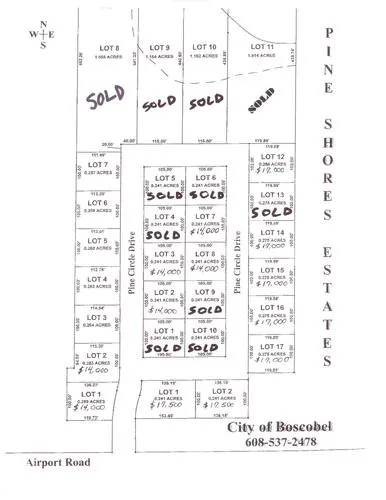 Residential building lots, approximately 100'x105', in the Pine Shores Estates subdivision located along the north edge of city limits very close to Wisconsin River. Additional lots of varying prices and sizes also available. Zoned residential with covenants in place for your protection. Land contract terms available.