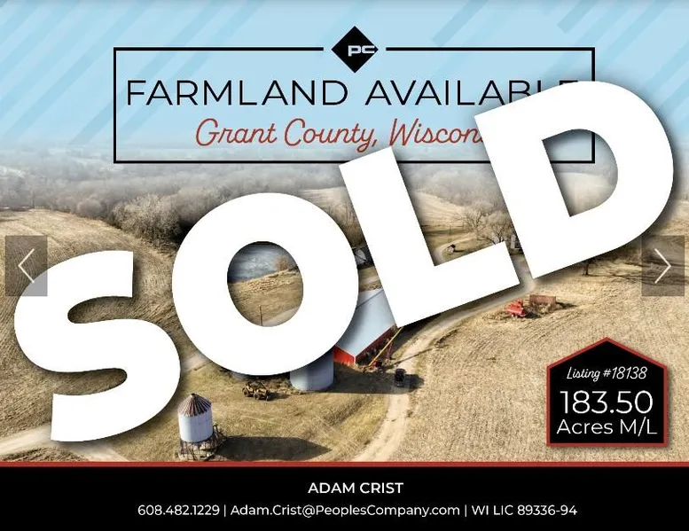 Peoples Company is excited to offer a prime opportunity to acquire 183.50 acres of top-tier farmland in Grant County, Wisconsin. Just minutes from Potosi, this property boasts 118.89 FSA cropland acres with a Productivity Index (PI) of 79.8. The Fayette silt loam soil type dominates the land, making it perfect for consistently strong crop yields.