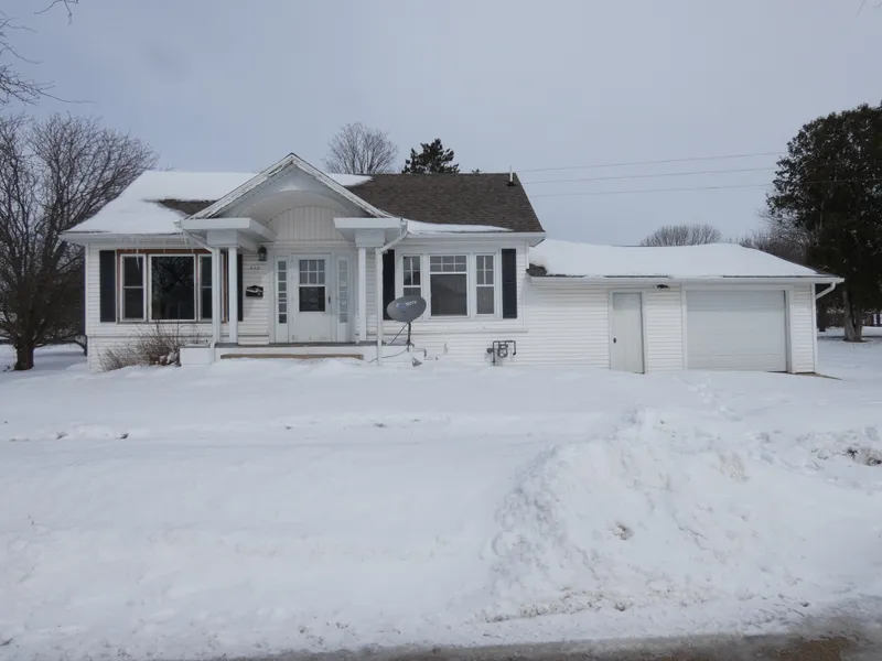 Opportunity knocks for handy person here to work on this home. Main floor has bedroom, full bath, laundry, large dining area, kitchen and large living room. Upstairs is over very large bedroom. Basement previously finished needs redone. Includes a half bath. Discoloration/mold present throughout basement will need resolved. Great location with backyard adjoining large community park. Irregular shaped lot due to former railroad tracks. Oversized one car attached garage with ramp entry (could be removed) plus an older one car detached garage. Home will not qualify for many loan products. Call for closer look today.