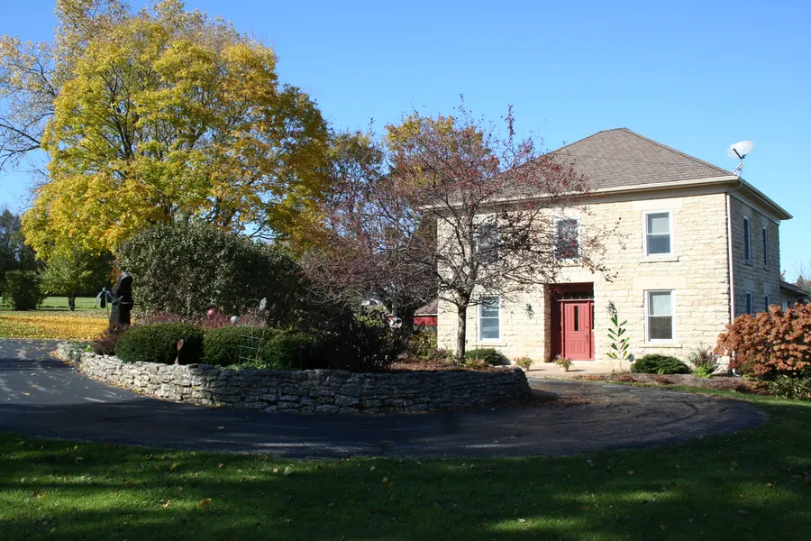 Restored to its original beauty in 1995, this 2-story rock home with exposed interior rock walls is nestled among mature trees and wildlife making it feel as though you live in the country yet only minutes from town. The kitchen has custom-built cabinets and a breakfast bar, family room has gas fireplace, formal dining, library with built ins, first floor laundry, three bedrooms, 2.5 baths and an attached garage. There are also two additional buildings located on the vast 2+ acre lot along with great landscaping to include many perennials! A hidden gem like this won't last long!