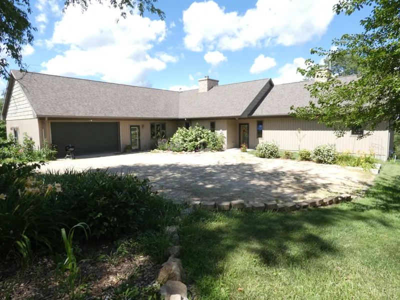 Beautiful ridge views setting for this rural residence with 6.7 acres. Built in 2008 this open concept ranch style boasts nearly 2700 square feet on the main level alone. High ceilings, large rooms and hardwood flooring throughout. Cozy up to the wood fireplace in the living room. Spaces to spread out include formal and casual living and dining areas. Main floor further includes exceptional master bedroom suite, second bedroom, second bath, office plus fitness room. Two bedrooms and third bath in the walkout lower level. Geothermal wells are installed but not in use. Stone structure out front was built to be a wine cellar. More land available up to total of 34.5 acres. Most furnishings in the home are available and negotiable. Private road annual fee $100-$200. Schedule your visit today.