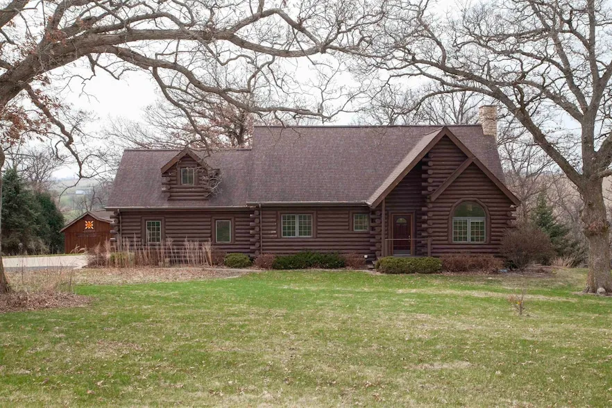 Nestled on 2 serene country acres, this meticulously maintained log home offers peace, privacy, and beautiful views. With 2 bedrooms, 2 baths, and a versatile loft, it also features a ready-to-finish walkout lower level ideal for a rec room, extra bdrm, and bath. The great room offers a stunning floor-to-ceiling stone gas fireplace. The kitchen has newer appliances (2020), a breakfast bar, and opens to a dining area with countryside views and a beautiful arched entry to the great room. Upstairs, enjoy a loft nook and spacious primary suite with ensuite bathroom. Peace of mind is ensured with a new furnace, A/C, humidifier, and a 50-gallon water heater (2022) perfect for filling the jacuzzi tub. The outbuilding offers endless opportunities. A true blend of rustic charm and modern comfort.