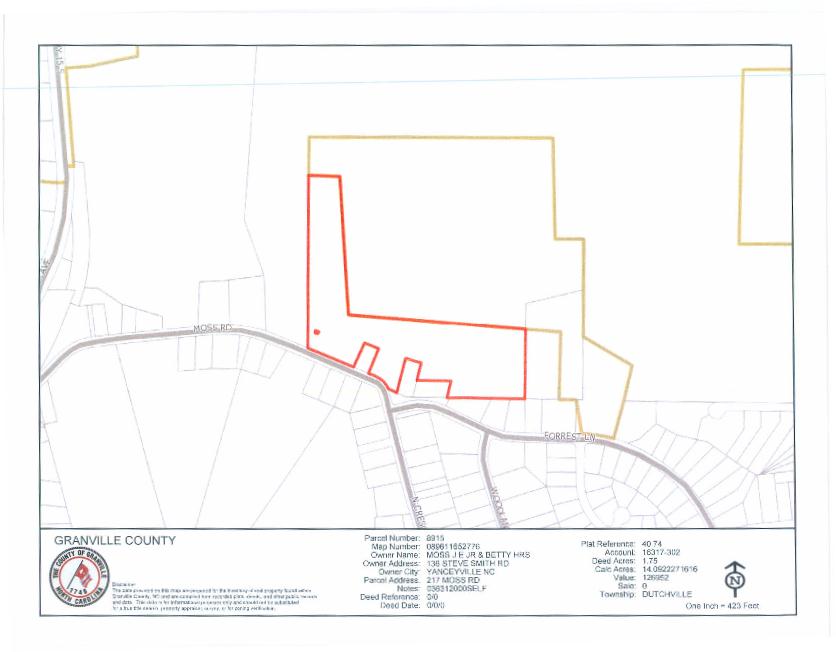 Research Parcel InformationFrom Raleigh take Highway 50N thru Creedmoor, then road turns into N. Main Street. Bear right on Moss Road. Property on left.