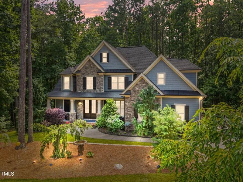 PRIVACY! PRIVACY! PRIVACY! Less than 10 minutes from camping and boat ramp at Holly Point/Falls Lake. Welcome to 3587 Garner Terrace Way in The Preserve at Smith Creek—a beautifully maintained home tucked away on a serene and private 1.46-acre lot surrounded by mature trees and lush landscaping. With amazing curb appeal and a rocking chair front porch, this home offers the perfect blend of luxury and tranquility. Inside, you'll find 3,090 square feet of living space with 4 bedrooms, 3 full baths, and a 2-car garage. The versatile layout includes both a first-floor primary suite and a first-floor guest suite—ideal for multi-generational living or hosting overnight guests. Step into the grand two-story foyer with open catwalk railing and hardwood floors that flow seamlessly throughout the main living areas. The formal dining room boast an upscale coffered ceiling and opens to the heart of the home—a stunning two-story family room with a cozy gas log fireplace and custom surround. The family room connects effortlessly to the breakfast nook and gourmet kitchen, which features an oversized center island, stainless steel appliances, a large pantry with a barn door and custom wood shelving, and a convenient mudroom/drop zone off the garage. The main-level primary suite offers serene backyard views and includes a spa-like bath with dual vanities, large format tile flooring, a freestanding soaking tub, and a tiled walk-in shower. The expansive walk-in closet offers custom wood shelving and built-in cubbies for smart storage. Upstairs, enjoy a spacious game room and a bonus room perfect for hobbies or a media space, two additional bedrooms, a buddy bathroom with two private vanity areas, and generous walk-in storage. This exceptional estate-style home provides the privacy and space you've been looking for—enhanced by thoughtful upgrades and a prime location. Don't miss the opportunity to make this beautiful property yours. Schedule your private tour today!