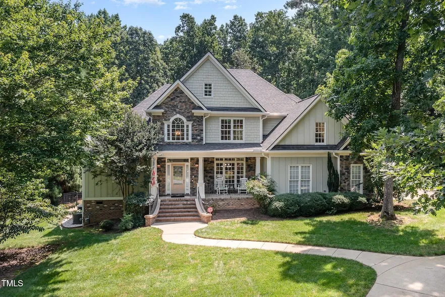 Better than new! Steven Hayes Custom with heated salt water pool and resort like grounds in highly desirable Silverleaf - Minutes from Wake Forest! True custom on private & pristine wooded acre fully fenced lot backing to woods! Grand 1st floor primary suite w/true luxury bath, huge WIC & 1st floor office (possible bedroom) w/adjacent full bath. Site finished hardwoods, Custom treatments & details/custom touches galore. Chef inspired gourmet kitchen w/S./S appliances, huge silestone island, pantry & custom cabinetry. Open & inviting with an abundance of natural light & pristine views! 2nd floor features (2) additional huge bedrooms, bonus room, office area & unfinished storage area! Gorgeous covered and vaulted rear screen porch and paver patio. Additional features boast whole house generator, salt water softener system, tankless HWH, hot water spigot at driveway, walk-in crawl space. M...