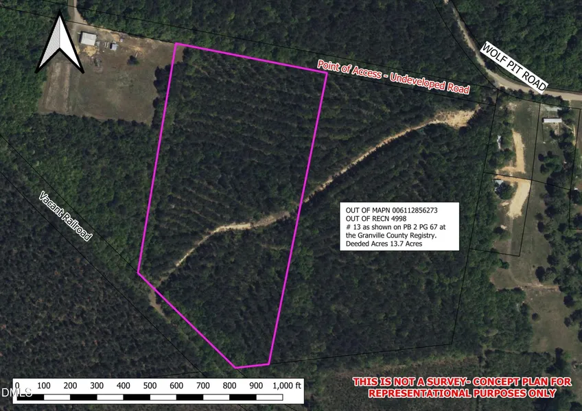 ** OWNER FINANCING AVAILABLE **Discover a versatile land opportunity less than a minute from the Virginia state line off Wolf Pit Road in northern Granville County. One parcel out of two the seller is offering, this rolling tract of 13.7+/- acres and features recently thinned, merchantable timber. A natural drainage feature meanders through the land, enhancing its character. This property is well-suited for a private retreat, homestead, recreational use, or investment. It has to access via gravel-NCDOT maintained Wolf Pit Road (SR#1401) then traversing along a undeveloped road, with electric service available at the frontage of wolf pit and Starlink recommended for high-speed internet. The rear of the property borders what appears to be an inactive railroad. No known restrictive covenants or HOA apply. A soil test has not been completed; however, USDA soil maps indicate the presence of Nason series soils (NaB/NaC), which are favorable for septic suitability. Buyers are encouraged to consult a licensed soil scientist for confirmation. The parcel has severed mineral rights-refer to the recorded deed for further detail and consult with a licensed real estate attorney. A new survey is recommended. Reference recorded survey PB 2 PG 67 AND PB 50 PG 157 at the Granville County Registry tract 13, direct access to the tract is provided by an easement/road, roughly 60 feet wide. The Subject property has 580 feet of frontage along old road/easement. No known road maintenance agreement between owners whom have access off this 60 feet wide easement/road. Consult with a license surveyor and real estate attorney for further details, also see recorded plat. Immediate timber value estimated by registered Forester. NOTE TAX VALUE AND BILL SHOWING PARENT PARCEL AND IS NOT ACCURATE.