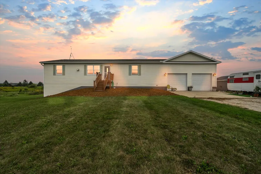Come on home! Updated and well cared for 3 bedrooms, 2 bath, 1,568 sq ft, stick built ranch home nestled over a rolling 10 acres. Full walk out basement ready for you to create. Built in 2004, open concept featuring an oversized living room complete with a gas fireplace. Primary suite offers a walk-in closet complete with private bath. The home presents a split floorplan with primary bedroom separate from the other 2 bedrooms. The huge country style kitchen features custom pine cabinets, large island with breakfast bar garnished with pendant lights and seats 3. Just off the kitchen, extends a sliding glass door to the deck that faces the east. Not only do you get to soak up all the wildlife but also are spoiled with front row seats to watch daily sunrises. Enjoy the wildflowers bloom in all seasons and the many trails within the 10 acres or create your own! Plenty of room for a pond and pole barns. Stove, fridge, dishwasher, microwave, washer, dryer, and water softener all stay. The laundry room is on the 1st floor between the 2-car garage and the kitchen and serves as a mudroom as well. The walk out basement is a ''wood basement'' insulated and ready to finish.