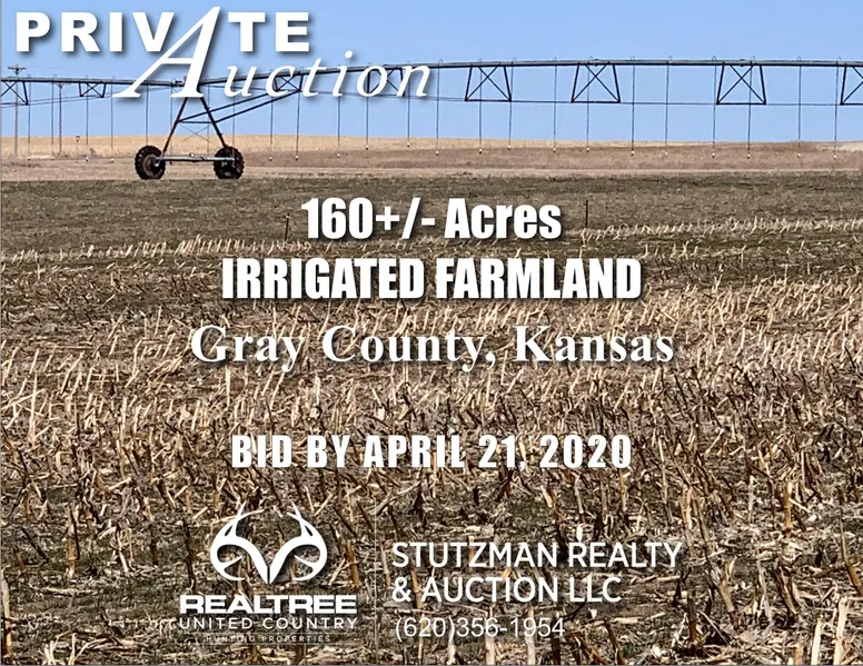 This 160+/- acre property is located on the High Plains of Western Kansas. The acreage on this Gray County property is comprised of 120+/- acres under pivot irrigation with 2019 Fall-planted wheat. The north corners, 20+/- acres are 2019 corn stalks and the south corners, 20+/- acres are native grass. The soils are predominately Class III Pratt fine sandy loams with a 1-5% slope.
