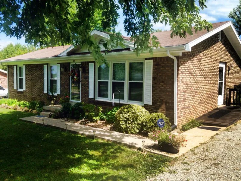 Adorable brick ranch style home with 1163+/- SQFT of living space, 3 Bedrooms, 1 Full remodeled bathroom, laminate flooring and carpet throughout, open Eat-in kitchen with white cabinets, designated family room, all kitchen appliances remain and also the washer and dryer. This immaculate home sits on a 0.71+/- acre lot with mature shade and landscaping! Also included in a 10x14 wooden storage shed. This home has central heat and air and very energy efficient! Located in the city limits of Leitchfield near hospitals, grocery stores, etc... It is also within 10min drive of Rough River Lake! MOVE IN READY! Call today it won't last!
