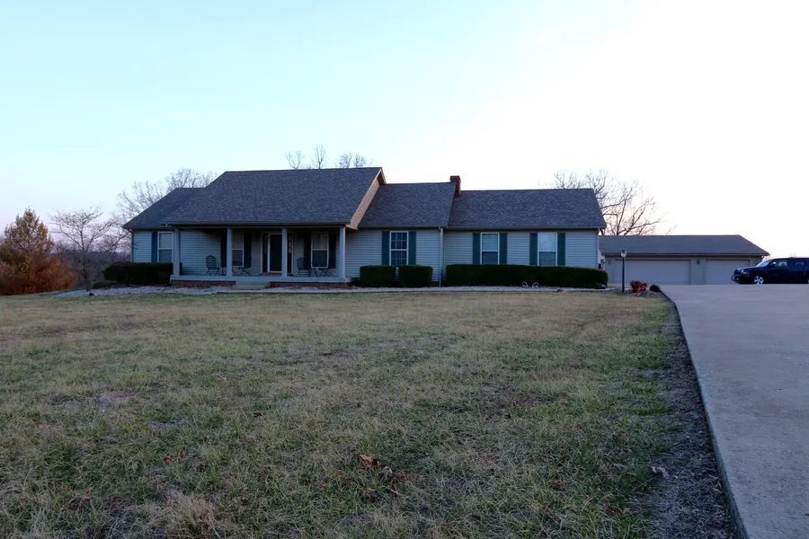 NEW LISTING! Check out this gorgeous home situated on 3.2+/- acres just outside the Leitchfield city limits! This 3600+/-SQFT home features 5 possibly 6 bedrooms, 4 full baths, 2 master suites one with a whirlpool, 2 full kitchens (one upstairs one down), fully finished walk-out basement, gas fireplace, large open kitchen living room area, formal dining room, new upstairs kitchen appliances (2016), new covered back deck (2016), hardwood flooring in main area of the home! This house also includes a 3 car detached garage with gas heat and a covered shed in the back,new survey, wildlife and even deer in the backyard! The sellers are offering a 1yr home warranty from APHW to the buyer! The yard here is great and huge for numerous outdoor activities and entertaining! Call today this home will not last long!