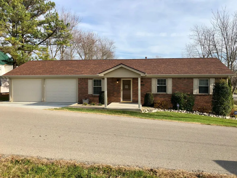 Adorable brick ranch style home in the Leitchfield City Limits located near local schools, factories (work), hospital and shopping! This 3 bed 1 bath home features gorgeous hardwood vinyl flooring throughout the main areas of the home with carpet in the bedrooms. The open eat-in kitchen is equipped with white appliances and is open to the living room area. Double doors lead you out onto an oversized back deck great for entertaining! This property also features a large 2 car attached garage with epoxy covered floors, replacement windows, 8x10 outbuilding, propane furnace and HVAC, Immediate possession at closing and move-in ready! Sellers are offering a 1yr home warranty for the buyers!