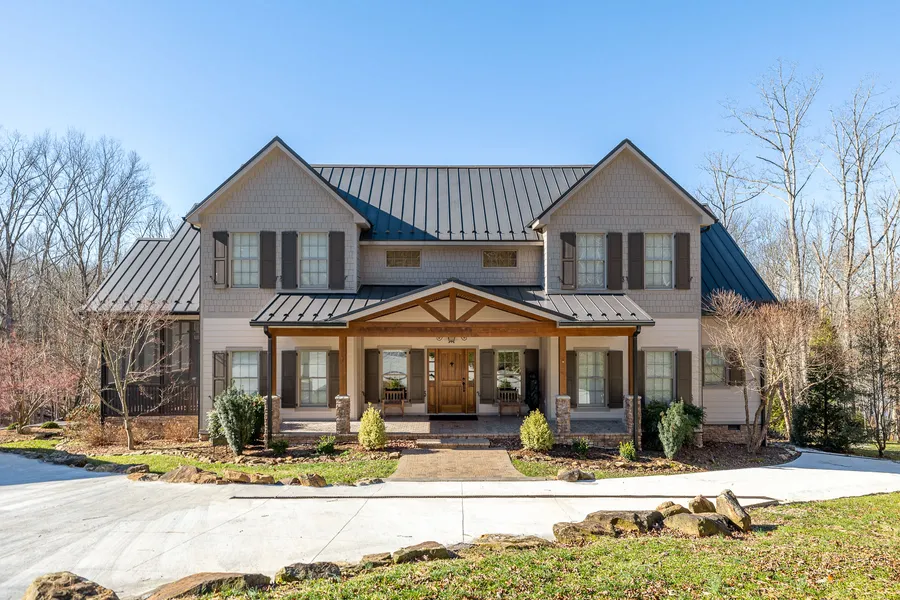 Introducing this gorgeous Nolin Lake home that is sure to provide many memories for its fortunate new owner. Originally built in 2006, 504 Danes Hill Road was perfectly situated on the 3.3 acre lot that features lakefront privacy and wooded backdrop while providing the space needed for yard games, a luxurious fire pit, and a 2.5 car garage with plenty of storage for all your lake toys. This spacious and modern cabin dazzles as a grand, yet cozy entrance way welcomes you into the home. Not a detail was missed as natural woodwork, columns, and beams fill the open living space that is centered around a two story, stone fireplace opening up to the back deck. The open kitchen features a large island and peninsula for seating, stainless appliances and conveniently opens up to the screened in, outdoor dining and side entrance. The primary suite is located on the main floor as well as a second bedroom or den with its own adjoining on suite bath. Guests and family may take their pick of the second floor featuring two bedrooms and two full bathrooms or the basement that has a large bunk bed room and full bathroom. The exterior of the property has been meticulously maintained with intricate concrete work. The walkout basement leads to a large fire pit and sitting area with privacy and scenic views of the property. The property offering contains up to 3 boat slips located at the nearby private dock which is situated on a private cove within Nolin Lake. 504 Danes Hill includes a total of 5 bedrooms and over 4,500 finished square feet of perfect lake house enjoyment. With warmer months approaching, the time to plan for memorable seasons for years to come begins now.