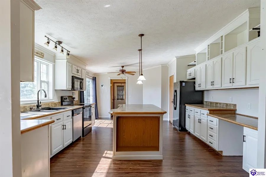 Welcome to 5491 Elizabethtown Road, Clarkson, KY! Nestled on 6.75 acres of true countryside living this property offers a serene retreat with all the modern comforts. Step inside to discover updated laminate flooring throughout leading you to a spacious living room adorned with an oversize stone fireplace - perfect for cozying up on those cooler evening. The vaulted ceilings add an airy feel, enhancing the home's warm ambience. The heart of this home is the oversize kitchen, fully equipped with a refrigerator, freestanding range, microwave, and dishwasher - ideal for anyone who loves to cook or entertain. The master suite is a Haven of relaxation, featuring a double vanity and a luxurious corner garden tub, perfect for unwinding. The split floor plan, insures privacy with the updated guest, bathroom, boasting double vanities, and charming shiplap walls. The master suite is a Haven of rel...