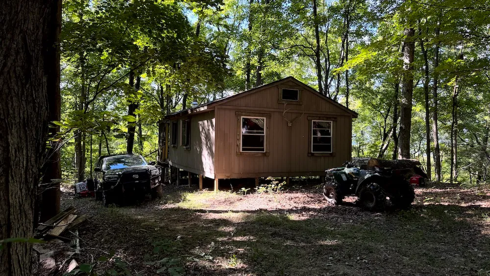 Located on Olaton Road in Caneyville, this 76.31-acre tract offers a rugged hardwood setting, long-term timber value, and a secluded off-grid cabin. The property is fully wooded, with timber that has not been cut in several decades, providing both immediate marketable value and solid investment potential for future harvest cycles. Its terrain is rugged but not mountainous, made up of ridges and slopes that create a natural sense of seclusion and attract consistent wildlife activity.A gated entrance leads into the property, where recently graded trails provide access across key portions of the acreage. These trails support foot travel, ATV and UTV use, and make it easier to reach hunting locations, manage the land, or bring supplies into the cabin. Despite the rugged terrain, the trail work helps open up much of the interior, allowing access that is often uncommon on properties with similar topography.The off-grid cabin sits well off the road in a quiet, private setting surrounded by mature hardwoods. It has a rustic, backwoods feel with simple, functional amenities intended for hunters and outdoor-minded buyers who want seclusion without giving up the basics. The cabin includes lighting powered by a generator, an outhouse, and a rudimentary shower setup. A propane stove provides a means for cooking, and cooling is handled by a traditional cooler. The overall setup offers a comfortable roughing it in style experience for weekends or extended stays.The property contains several deer stands that will remain with the sale. Their locations take advantage of the rugged terrain and natural funnels created by the ridges and slopes. Wildlife presence is supported by the diverse hardwood canopy, varied topography, and the small creek that runs along the backside of the main ridge. This creek flows most of the time and serves as a dependable water source for deer and turkey throughout much of the year.The timber on the property is one of its standout features. It has not been harvested in several decades, resulting in an older hardwood stand with immediate timber value and excellent long-term investment potential. Species composition includes the typical upland hardwoods commonly found in this region of Grayson County. The maturity of the timber contributes both ecological and financial value while also improving the habitat for wildlife.The rugged terrain forms distinct ridgelines and drainages, helping define travel routes for deer and providing ideal stand locations. Benches, edges, and subtle breaks in elevation create predictable movement patterns throughout the property. For buyers interested in wildlife management, the land provides a strong foundational structure that can be enhanced with future habitat projects.This property is well-suited for hunting, weekend retreats, or owning a long-term hardwood investment with recreational benefits. The private setting, off-grid cabin, graded trails, mature timber, and natural water source all work together to create a secluded and functional retreat in northern Grayson County. Buyers seeking a tract that combines immediate timber value with the ability to enjoy the outdoors right away will find this property compelling.