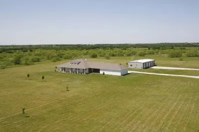 Located about 3 miles east of Hwy 377 and within walking distance to a cove of Lake Ray Roberts, 2318 Buck Creek Road near Tioga offers a custom home and a large workshop on 15 acres.