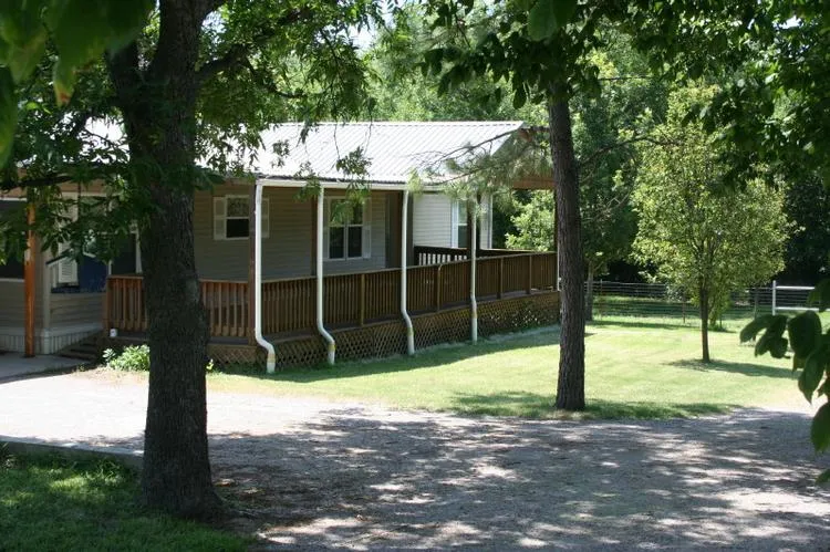 Beautiful farm nestled in numerous pecan trees and surrounded on 2 sides by a wooded creek. Excellent grass and fenced for all types of livestock. 2 barns, one being approx. 10,000 sq ft. 2 sheds and a like new 2,300 sq ft manufactured home that is in excellent condition. Large front porch, attached garage and everything is under metal roofing. Excellent location and a great find. This is not your typical manufactured home, a must see.
