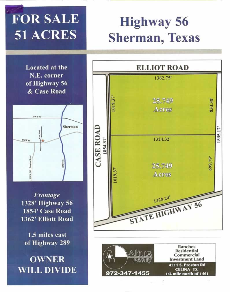51 acres. Excellent location near Sherman, TX on Highway 56.