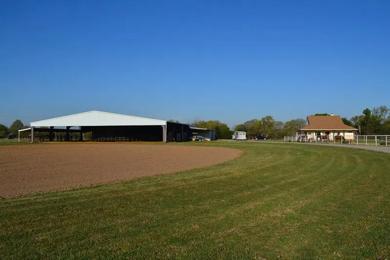 The horse barn has 10 stalls, a wash rack and adjoins a 100x100 covered arena that opens up to a larger riding pad. It also includes a nice two-bedroom, one bath apartment with tile floors and if there is more space off the arena to add more stalls if needed. There is also a 6-horse walker and several large pastures.