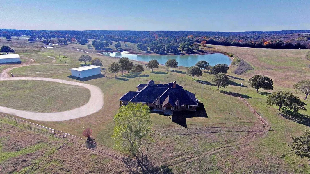 Magnificent 136-acre ranch features a custom home on a hilltop setting overlooking a picturesque 6-acre lake, a 2-acre lake and rolling pastures with scattered oak trees.