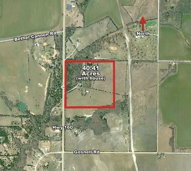 41 acres on Hwy 160 in Grayson County. Property has a 1810 sf house on it that is currently leased. The tenant has purchased another property and will be moving in March or April. TThe lease covers only the house and a surrounding 3 acres. With an ag-exemption in place this property would be cheap to hold and would provide some income as well. Current lease is $775/mo.