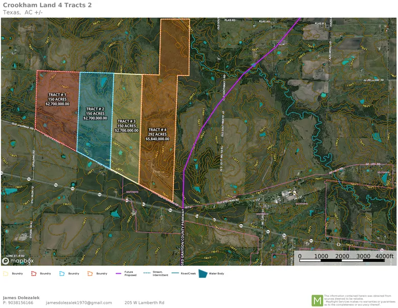 Location, location, location. This is a prime property located near the intersection of Highway 56 and Proposed Grayson County Toll Road. This is an amazing property to buy now when the prices are low and keep as an investment or future development. Property is in very close proximity to Sherman and Whitesboro and activities on Lake Texoma(fishing, boating, hiking etc). Rolling hills and views for miles on each tract. There are three 150 acre tracts at $2,700,000.00 each. Tract # 4 is 292 acres for $5,840,000.00. A lot of good building spots where you can build your get away home.